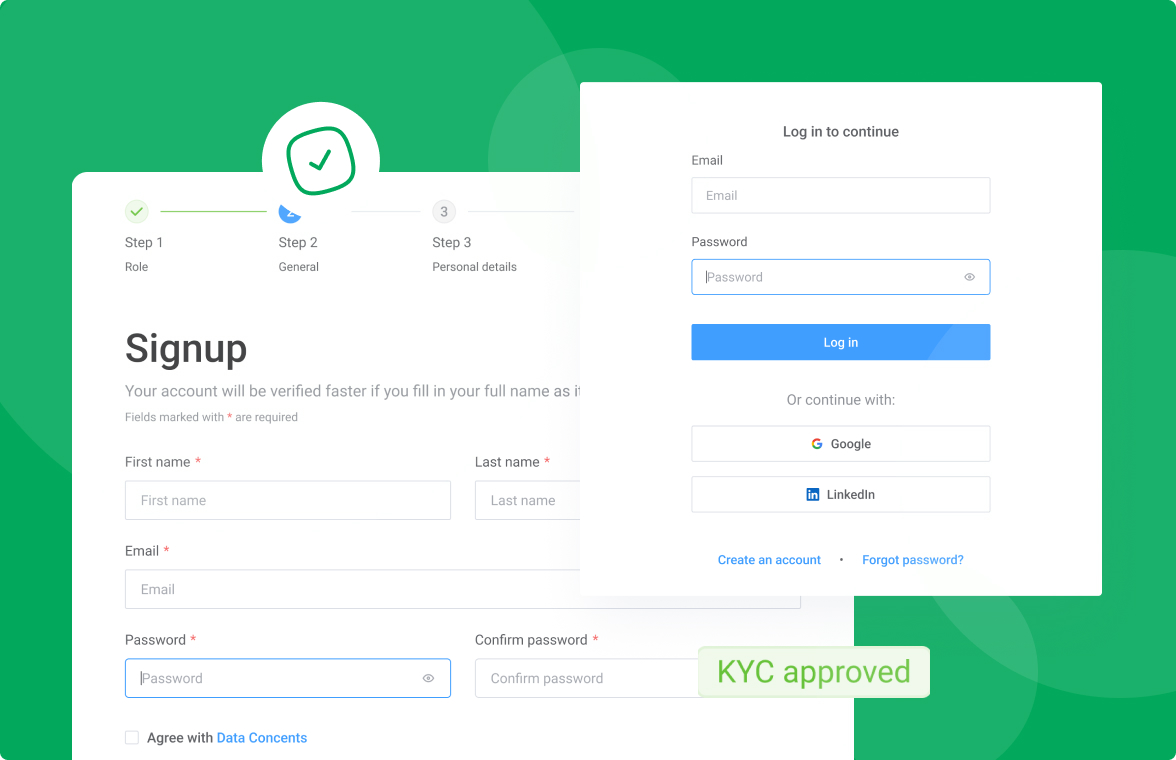 Create a new account, get verified and gain access to the full platform’s capabilities.